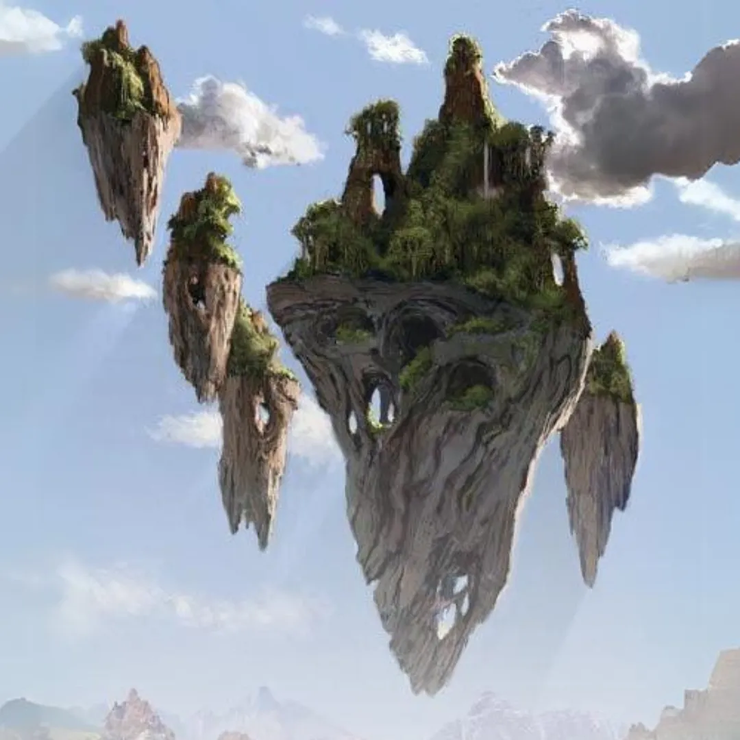 This led to the Archfey convincing the other fey to attempt to free themselves from this prison to write their own future and live. With the support of lesser fey led others to break the 'country' off the continent resulting in it breaking up into a large collection of sky islands. the islands are densely packed with Airstone, a crystalline structure far lighter the air creating an unusual gravitational field.