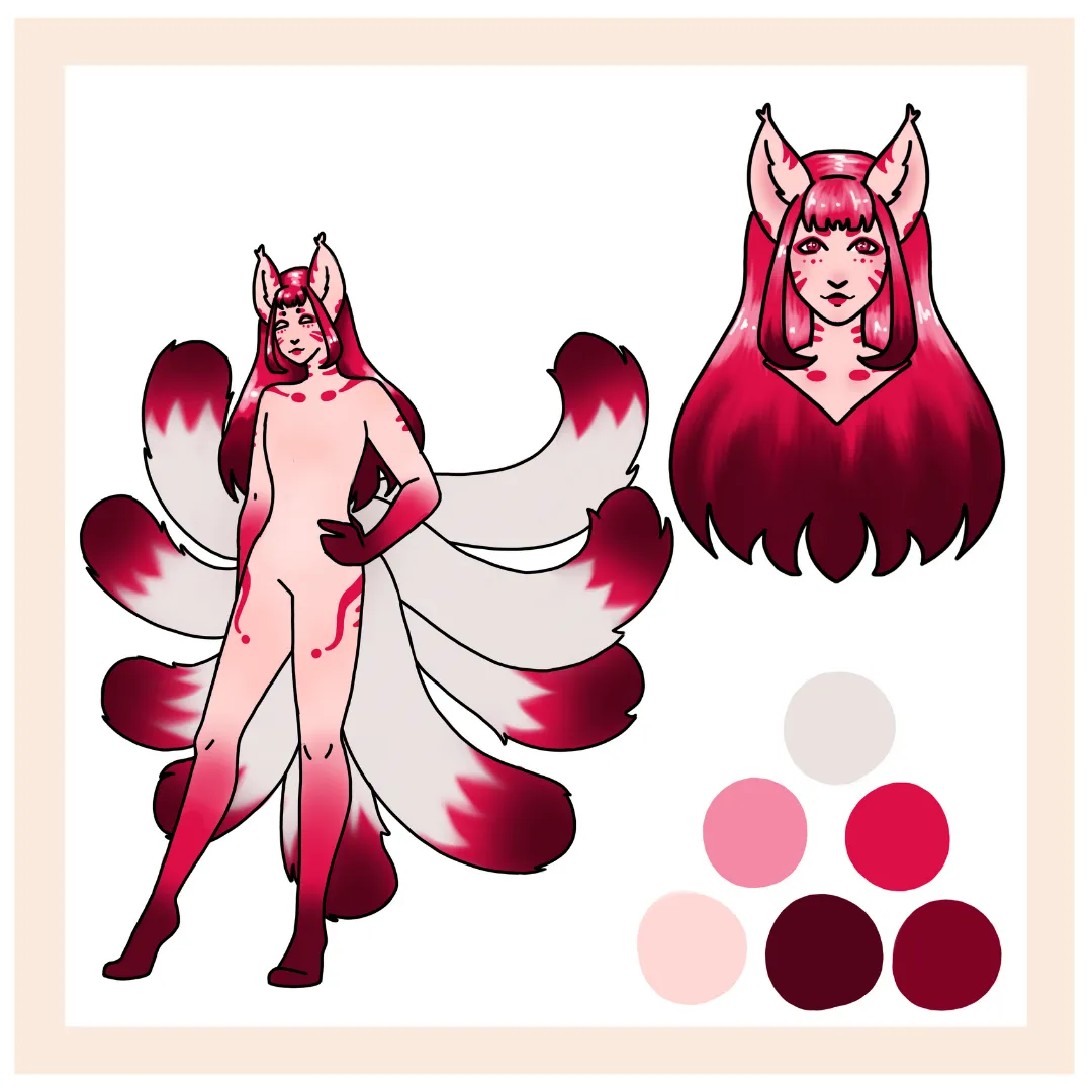 Characteristics: Multiple tails, fox ears and dark limbs,