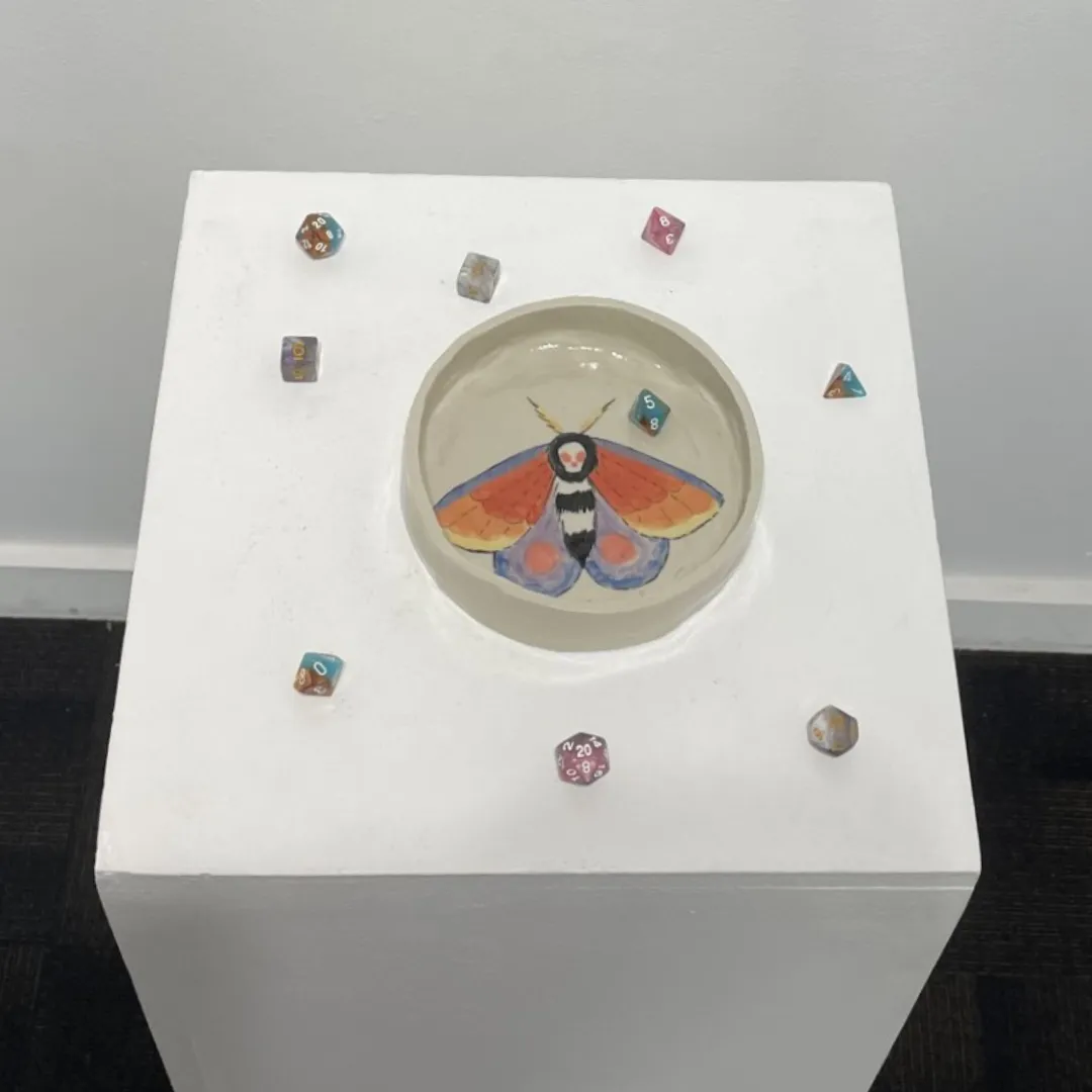 For this project, we were tasked with creating a wearable artwork. I designed a pair of wings inspired by the Atlas moth. My idea was to have then represent both a shield and a mask—something I could metaphorically hide behind. As someone who can be very emotional easily, the wings represented a social shield, a protective barrier. The moth's eye patterns were meant to ward off negativity, similar to how moths use their eye spots to scare away predators.