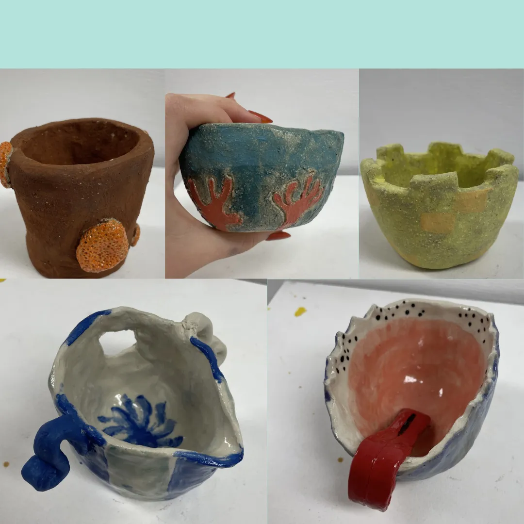 For this task I just followed the pinch pot techniques, and I decorated most of these with an ocean/underwater theme ranging from just using blue to making different types of corals.