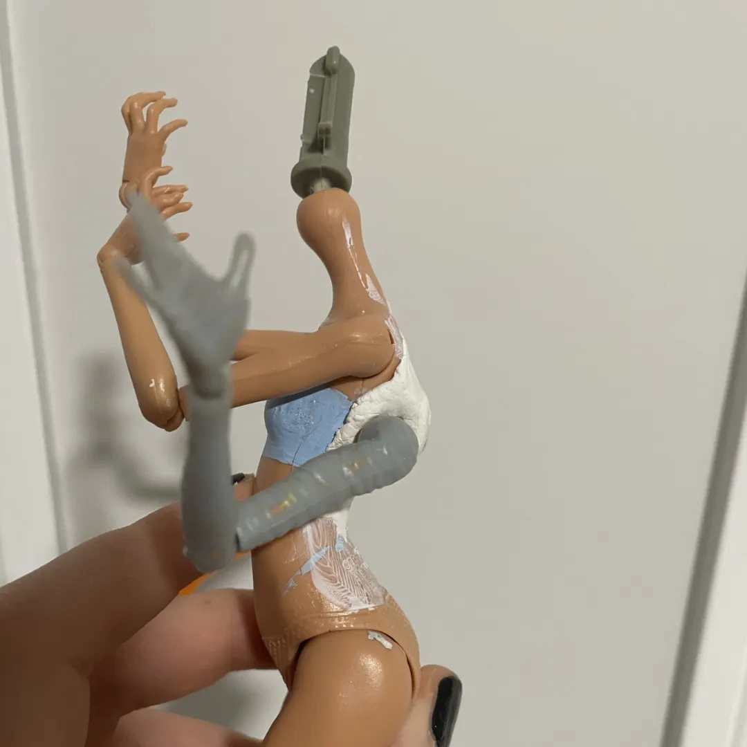 To do this I modified a Monster High doll by giving her a face up, rerooting her hair, giving her an extra set of arms and building her clothes.