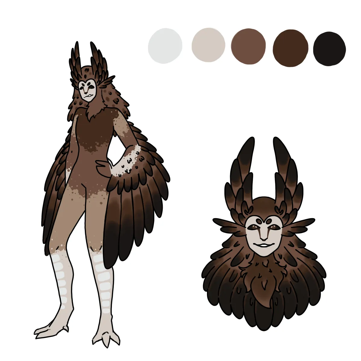 Ozero fey can be coloured in shades of black to white, brown and occasionally green with unique, bird inspired body patterns, but their patterns and colours are normally based on the overworld bird they are connected to. (The example fey is connected to a black goose, from which it takes its colours and patterns.)