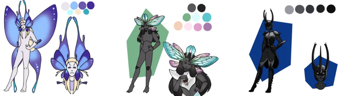 Exogota fey were my first fey and are from the idea of face wings similar to depictions of petal faced flower girls.