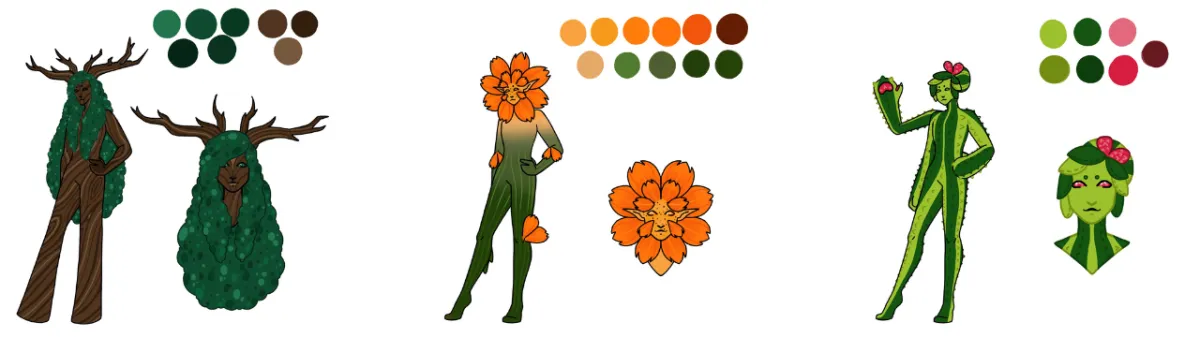 Catcu'teae fey are characterised by their prickly textures and spikes as well as fruit like accessories and multiple limbs with clublike hands.